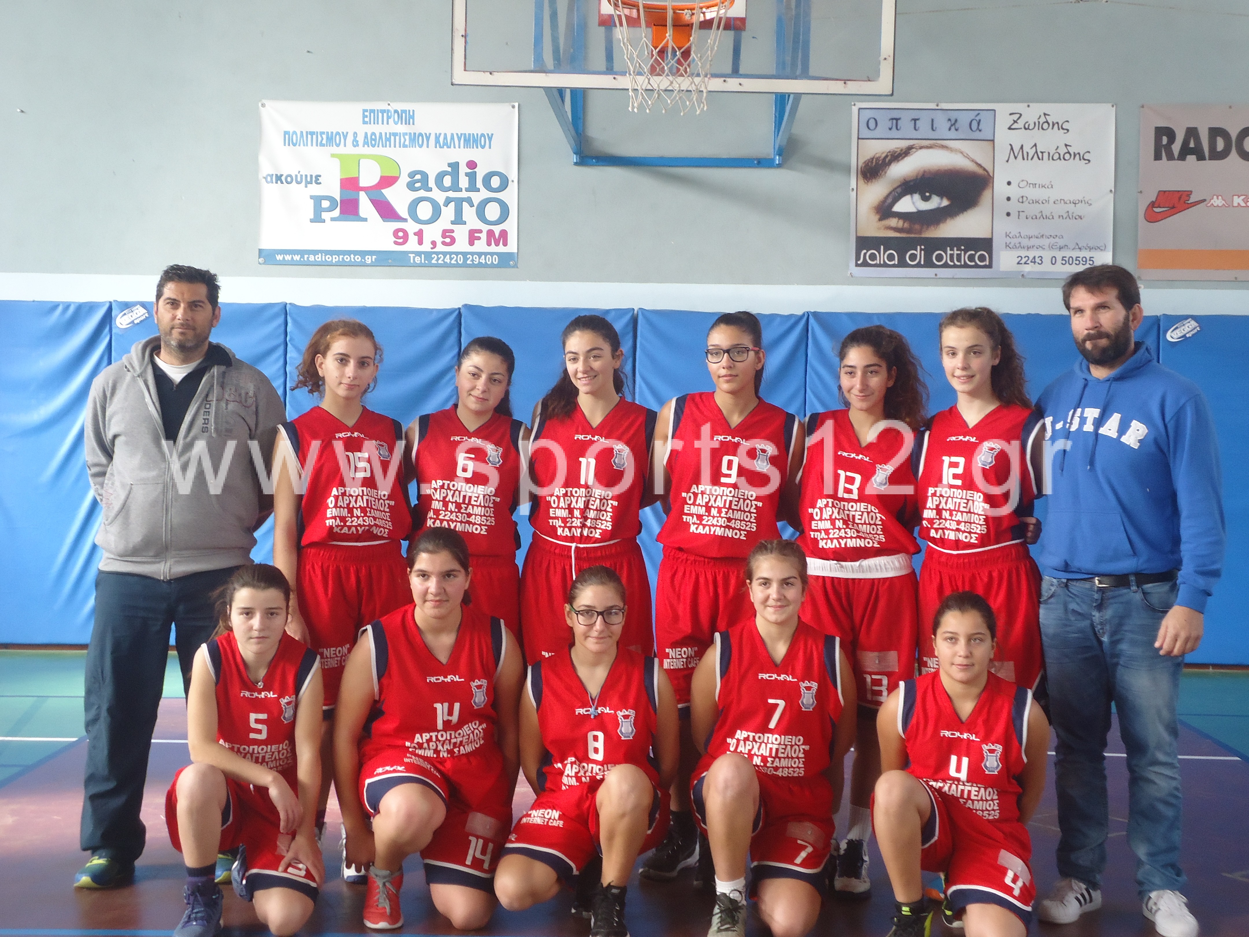 Από την άλλη μεριά τα κορίτσια του Καλυμνιακού είναι μικρότερες σε ηλικία (κατηγορία μίνι)που συμμετέχουν γιατί δεν διεξάγεται πρωτάθλημα στην κατηγορία τους και τώρα ξεκινούν τα πρώτα βήματα τους και μάλιστα στα δύσκολα.