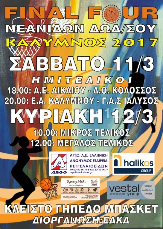 ΓΙΑ ΤΟ FINAL FOUR ΤΩΝ ΝΕΑΝΙΔΩΝ ΣΤΗΝ ΚΑΛΥΜΝΟΥ 11& 12 ΜΑΡΤΙΟΥ 2017