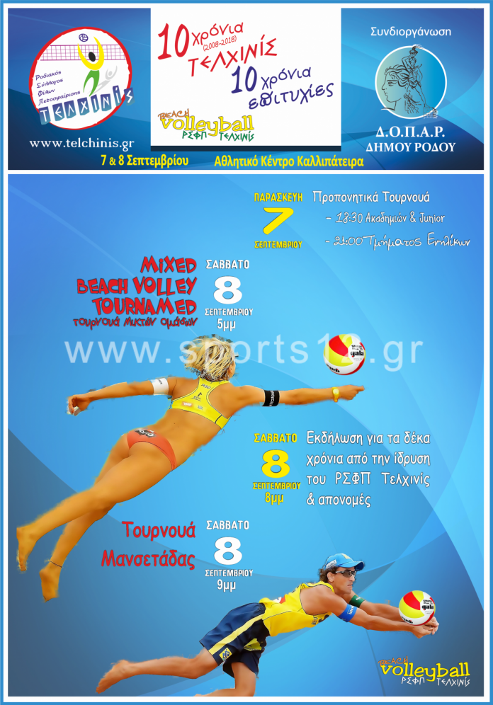 Στα γήπεδα μπιτς βόλεϊ, εκεί όπου γεννήθηκε η ιδέα ίδρυσης του συλλόγου, τα μέλη και οι φίλοι του ροδίτικου σωματείου θα γιορτάσουν τα 10 χρόνια ζωής του παίζοντας στα τουρνουά που θα διεξαχθούν την Παρασκευή και το Σάββατο.
