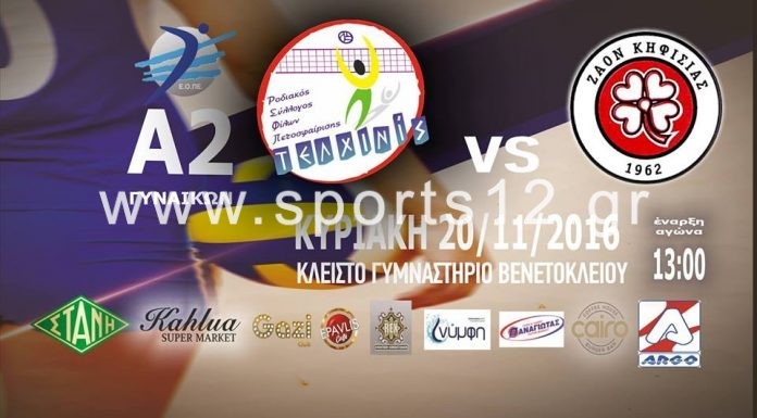 Την Κυριακή (20/11), στο πλαίσιο της 7ης αγωνιστικής της Α2 Γυναικών (Α΄ όμιλος, 2ος υποόμιλος), ο ΡΣΦΠ Τελχινίς θα φιλοξενήσει στη Ρόδο τον ΖΑΟΝ με τα πέντε πρωταθλήματα Α1 και ένα κύπελλο Ελλάδας (2002). Θα είναι η 3η φορά που οι νταμπλούχες Αιγαίου θα αντιμετωπίσουν τον Ζηρίνειο Αθλητικό Όμιλο Νέων (ΖΑΟΝ) αφού η ιστορική ομάδα της Κηφισιάς έχει ‘επισκεφτεί’ το Βενετόκλειο δύο ακόμη φορές, στις 12/1/2013 και στις 8/1/2016. Και οι δύο αγώνες ήταν για την Β΄ Φάση του Κυπέλλου Ελλάδας με τον ΖΑΟΝ να προκρίνεται εις βάρος της Τελχινίδας με 1-3 και 0-3 αντίστοιχα.